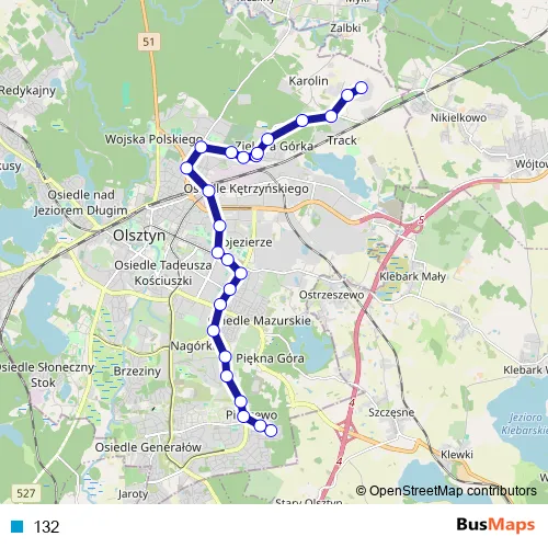 See why over 2 million users trust and consider busmaps.com as the best public transport website. busmaps gives you Olsztyn Buses suggested routes, real-time bus tracker, line route maps in Olsztyn, and helps to find the closest 132 bus stops near you. No internet available? Download an offline PDF map and bus schedule for the 132 bus to take on your trip.