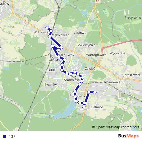 See why over 2 million users trust and consider busmaps.com as the best public transport website. busmaps gives you Tychy Buses suggested routes, real-time bus tracker, line route maps in Tychy, and helps to find the closest 137 bus stops near you. No internet available? Download an offline PDF map and bus schedule for the 137 bus to take on your trip.