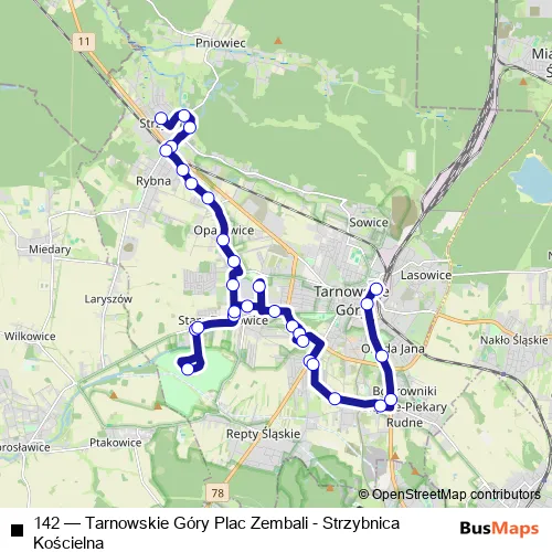 Bus 142 - Tarnowskie Góry Plac Zembali - Strzybnica Kościelna Schedule in Tarnowskie Gory