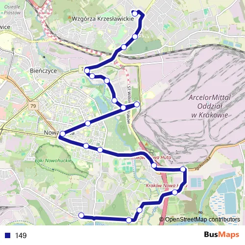See why over 2 million users trust and consider busmaps.com as the best public transport website. busmaps gives you Krakow Buses suggested routes, real-time bus tracker, line route maps in Krakow, and helps to find the closest 149 bus stops near you. No internet available? Download an offline PDF map and bus schedule for the 149 bus to take on your trip.