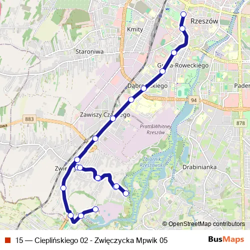 See why over 2 million users trust and consider busmaps.com as the best public transport website. busmaps gives you Rzeszow Buses suggested routes, real-time bus tracker, line route maps in Rzeszow, and helps to find the closest 15 bus stops near you. No internet available? Download an offline PDF map and bus schedule for the 15 bus to take on your trip.