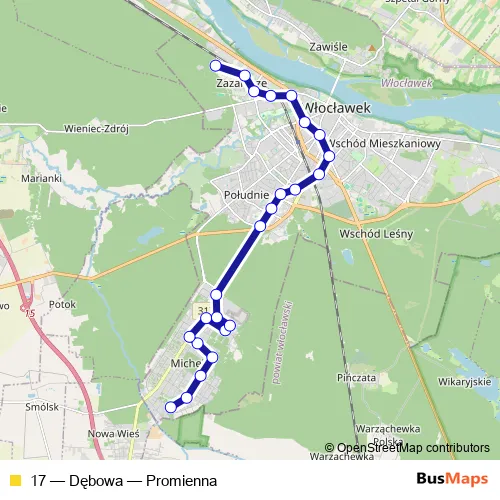 Bus 17 - Dębowa — Promienna: Full Schedule in Wloclawek