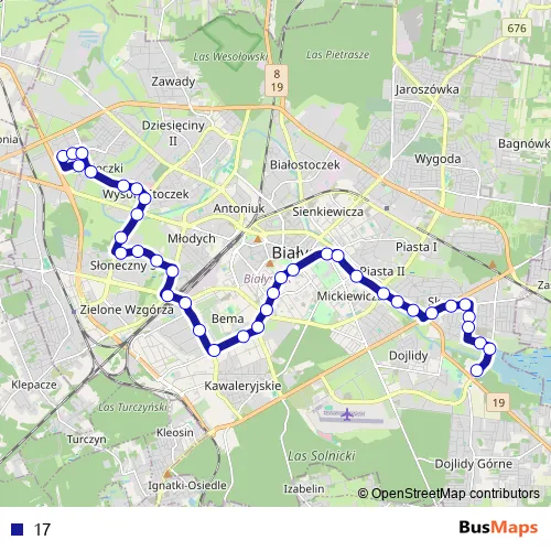 See why over 2 million users trust and consider busmaps.com as the best public transport website. busmaps gives you Bialystok Buses suggested routes, real-time bus tracker, line route maps in Bialystok, and helps to find the closest 17 bus stops near you. No internet available? Download an offline PDF map and bus schedule for the 17 bus to take on your trip.