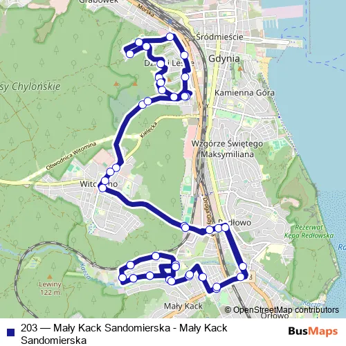 Bus 203 - Mały Kack Sandomierska - Mały Kack Sandomierska Schedule in Gdansk