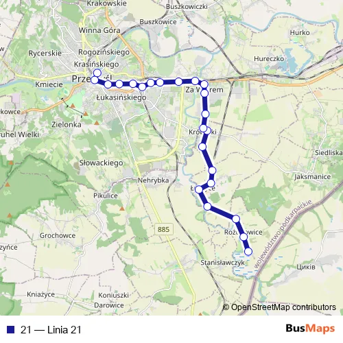See why over 2 million users trust and consider busmaps.com as the best public transport website. busmaps gives you Przemysl Buses suggested routes, real-time bus tracker, line route maps in Przemysl, and helps to find the closest 21 bus stops near you. No internet available? Download an offline PDF map and bus schedule for the 21 bus to take on your trip.