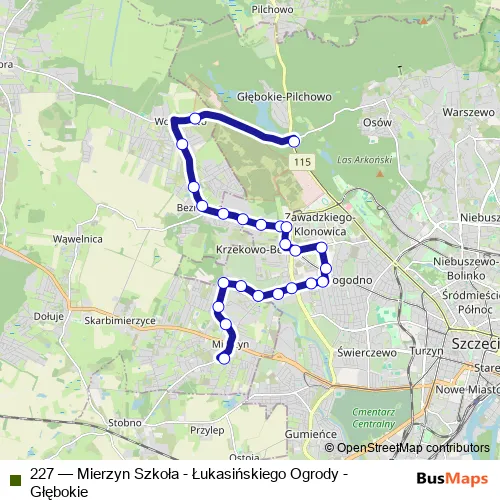 Bus 227 - Mierzyn Szkoła - Łukasińskiego Ogrody - Głębokie Schedule in Szczecin