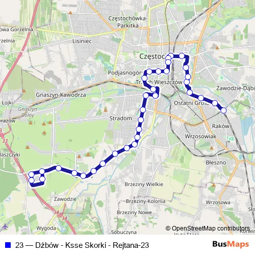 See why over 2 million users trust and consider busmaps.com as the best public transport website. busmaps gives you Czestochowa Buses suggested routes, real-time bus tracker, line route maps in Czestochowa, and helps to find the closest 23 bus stops near you. No internet available? Download an offline PDF map and bus schedule for the 23 bus to take on your trip.