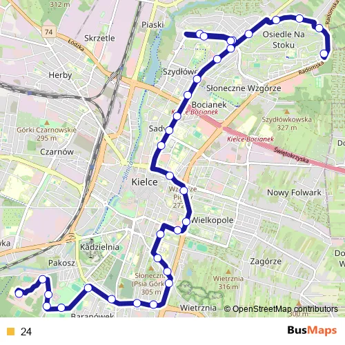 See why over 2 million users trust and consider busmaps.com as the best public transport website. busmaps gives you Kielce Buses suggested routes, real-time bus tracker, line route maps in Kielce, and helps to find the closest 24 bus stops near you. No internet available? Download an offline PDF map and bus schedule for the 24 bus to take on your trip.