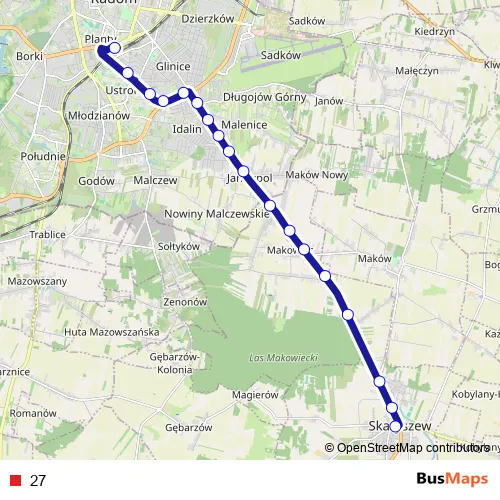 See why over 2 million users trust and consider busmaps.com as the best public transport website. busmaps gives you Radom Buses suggested routes, real-time bus tracker, line route maps in Radom, and helps to find the closest 27 bus stops near you. No internet available? Download an offline PDF map and bus schedule for the 27 bus to take on your trip.