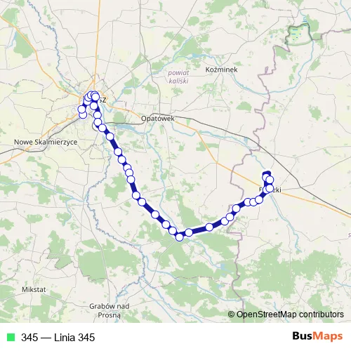 See why over 2 million users trust and consider busmaps.com as the best public transport website. busmaps gives you Kalisz Buses suggested routes, real-time bus tracker, line route maps in Kalisz, and helps to find the closest 345 bus stops near you. No internet available? Download an offline PDF map and bus schedule for the 345 bus to take on your trip.
