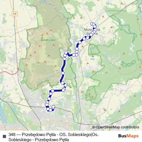 Click here to view the nearest 348 - Przebędowo Pętla - OS. Sobieskiego|Os. Sobieskiego - Przebędowo Pętla bus stop.