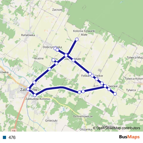 The first stop of the 476 bus route is Zabłudów Rynek Ii and the last stop is SP Zabłudów 5/1. 476 is operational during everyday.