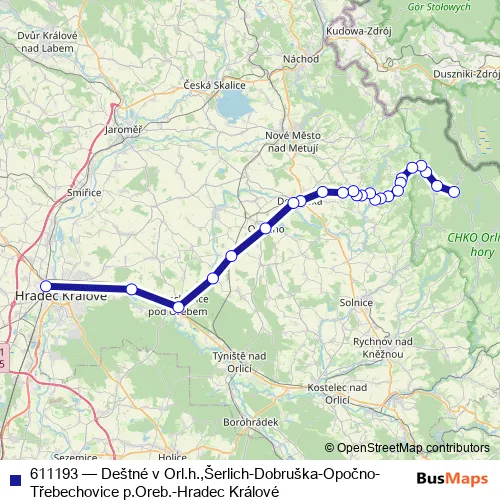 Click here to view the nearest 611193 - Deštné v Orl.h.,Šerlich-Dobruška-Opočno-Třebechovice p.Oreb.-Hradec Králové bus stop.