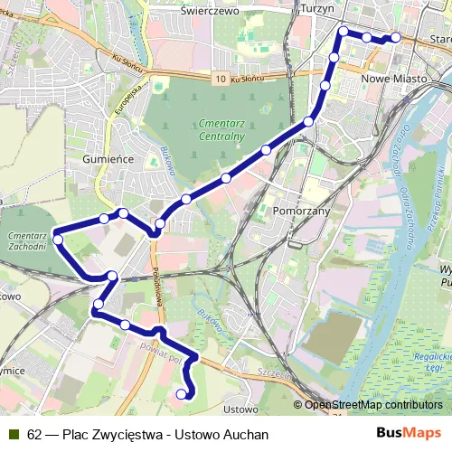 Bus 62 - Plac Zwycięstwa - Ustowo Auchan: Full Schedule in Szczecin