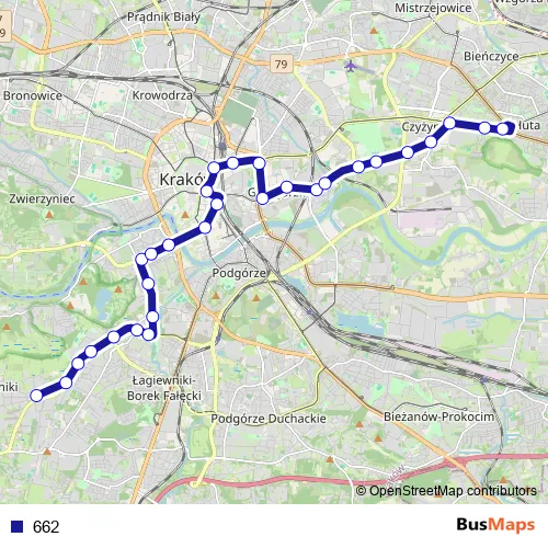 See why over 2 million users trust and consider busmaps.com as the best public transport website. busmaps gives you Krakow Buses suggested routes, real-time bus tracker, line route maps in Krakow, and helps to find the closest 662 bus stops near you. No internet available? Download an offline PDF map and bus schedule for the 662 bus to take on your trip.