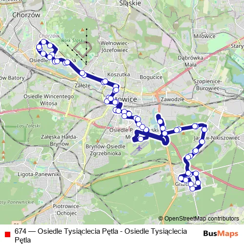 See why over 2 million users trust and consider busmaps.com as the best public transport website. busmaps gives you Katowice Buses suggested routes, real-time bus tracker, line route maps in Katowice, and helps to find the closest 674 bus stops near you. No internet available? Download an offline PDF map and bus schedule for the 674 bus to take on your trip.