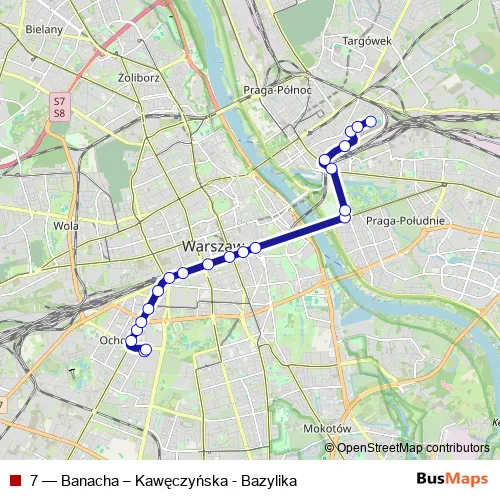 See why over 2 million users trust and consider busmaps.com as the best public transport website. busmaps gives you Warsaw Trams suggested routes, real-time bus tracker, line route maps in Warsaw, and helps to find the closest 7 tram stops near you. No internet available? Download an offline PDF map and bus schedule for the 7 tram to take on your trip.