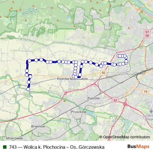 Bus 743 - Wolica k. Płochocina – Os. Górczewska Schedule in Ozarow Mazowiecki