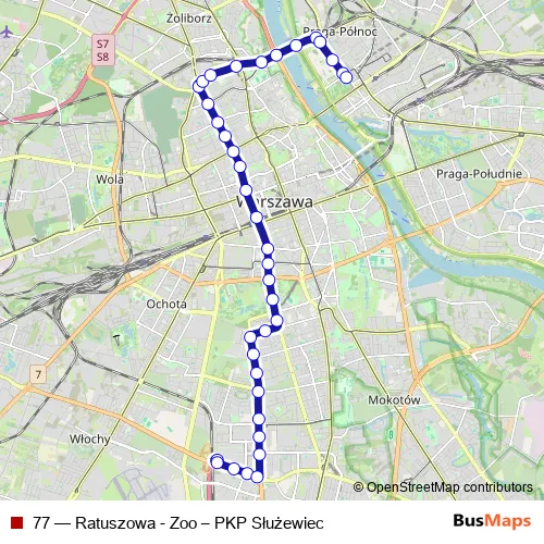 Ratuszowa - Zoo. 77 (Ratuszowa - Zoo – PKP Służewiec) is operational during everyday.