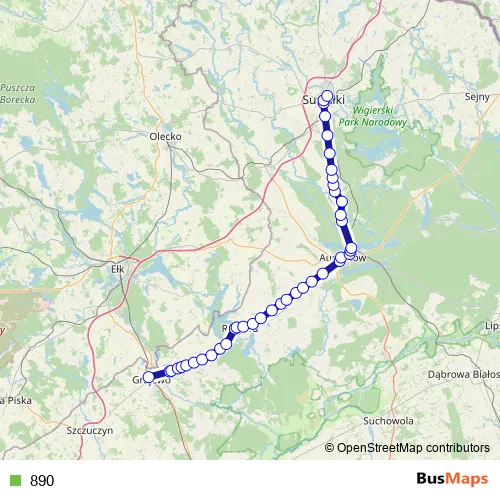 See why over 2 million users trust and consider busmaps.com as the best public transport website. busmaps gives you Augustow Buses suggested routes, real-time bus tracker, line route maps in Augustow, and helps to find the closest 890 bus stops near you. No internet available? Download an offline PDF map and bus schedule for the 890 bus to take on your trip.