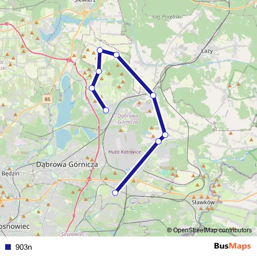 See why over 2 million users trust and consider busmaps.com as the best public transport website. busmaps gives you Bedzin Buses suggested routes, real-time bus tracker, line route maps in Bedzin, and helps to find the closest 903n bus stops near you. No internet available? Download an offline PDF map and bus schedule for the 903n bus to take on your trip.