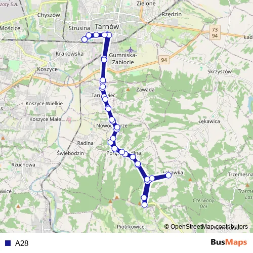 See why over 2 million users trust and consider busmaps.com as the best public transport website. busmaps gives you Tarnow Buses suggested routes, real-time bus tracker, line route maps in Tarnow, and helps to find the closest A28 bus stops near you. No internet available? Download an offline PDF map and bus schedule for the A28 bus to take on your trip.