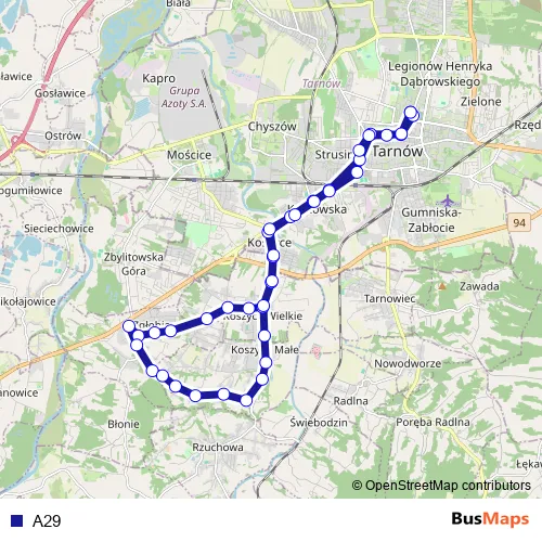 Bus A29 in Tarnow: Stops & Timetable