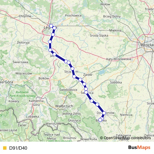 Rail D91/D40 in Swidnica: Stops & Timetable