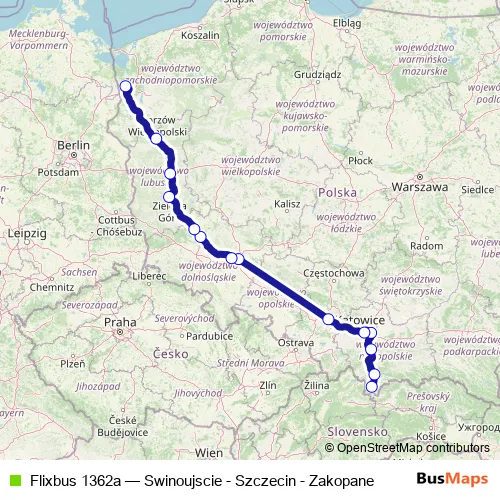 Click here to view the nearest Flixbus 1362a - Swinoujscie - Szczecin - Zakopane bus stop.