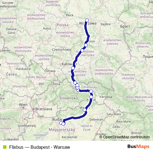 Bus Flixbus - Budapest - Warsaw: Full Schedule in Banska Bystrica
