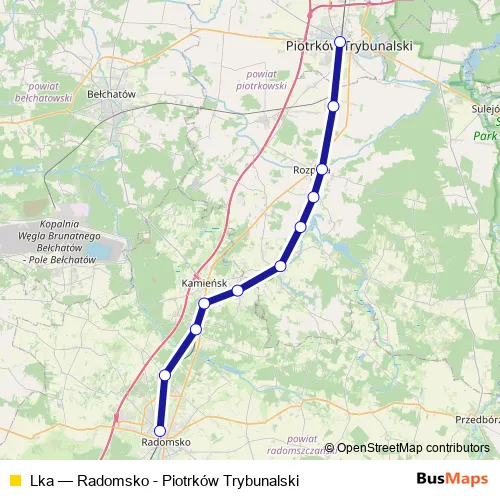 The first stop of the Lka rail route is Radomsko and the last stop is Piotrków Trybunalski. Lka (Radomsko - Piotrków Trybunalski) is operational during everyday.