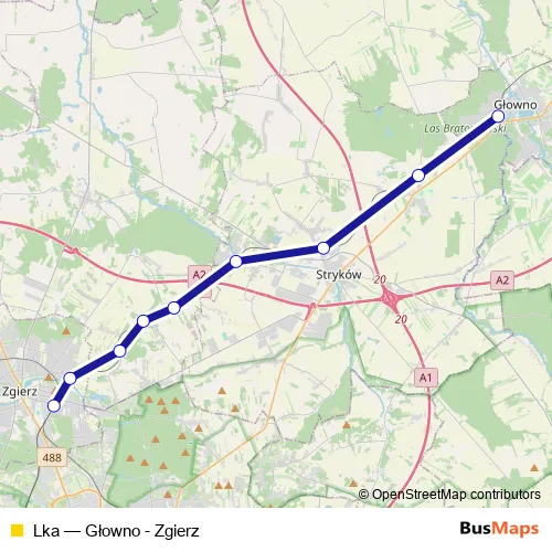 The first stop of the Lka rail route is Głowno and the last stop is Zgierz. Lka (Głowno - Zgierz) is operational during everyday.