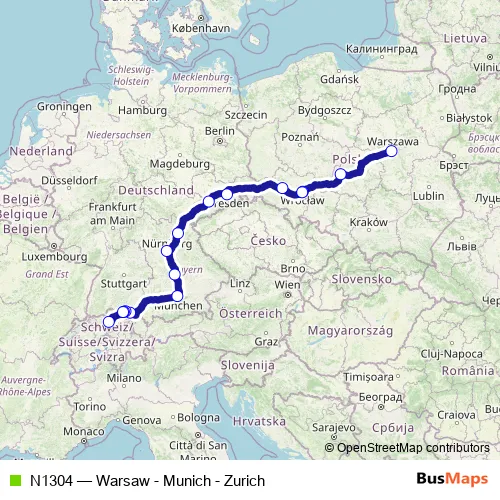 Outbound: Warsaw, Bus Station West – Zurich Bus Station