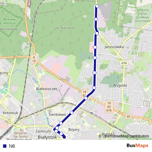 See why over 2 million users trust and consider busmaps.com as the best public transport website. busmaps gives you Bialystok Buses suggested routes, real-time bus tracker, line route maps in Bialystok, and helps to find the closest N6 bus stops near you. No internet available? Download an offline PDF map and bus schedule for the N6 bus to take on your trip.