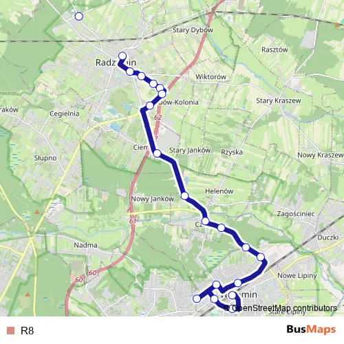 See why over 2 million users trust and consider busmaps.com as the best public transport website. busmaps gives you Radzymin Buses suggested routes, real-time bus tracker, line route maps in Radzymin, and helps to find the closest R8 bus stops near you. No internet available? Download an offline PDF map and bus schedule for the R8 bus to take on your trip.