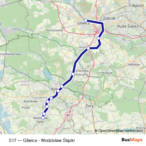 Click here to view the nearest S17 - Gliwice - Wodzisław Śląski rail stop.