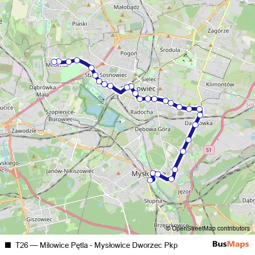 See why over 2 million users trust and consider busmaps.com as the best public transport website. busmaps gives you Katowice Trams suggested routes, real-time bus tracker, line route maps in Katowice, and helps to find the closest T26 tram stops near you. No internet available? Download an offline PDF map and bus schedule for the T26 tram to take on your trip.