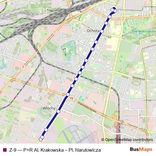 Click here to view the nearest Z-9 - P+R Al. Krakowska – Pl. Narutowicza bus stop.