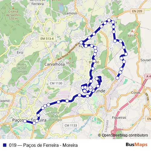 Bus 019 - Paços de Ferreira - Moreira Schedule in Pacos de Ferreira