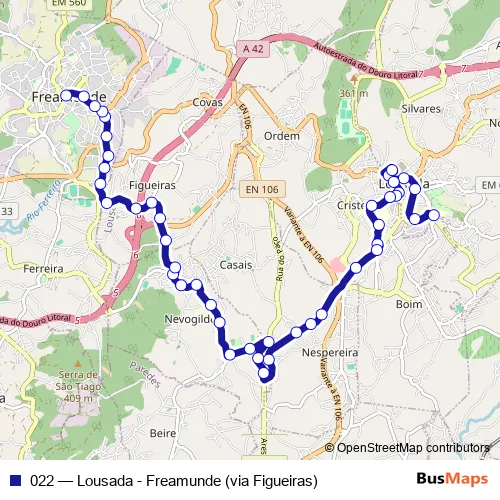 See why over 2 million users trust and consider busmaps.com as the best public transport website. busmaps gives you Lousada Buses suggested routes, real-time bus tracker, line route maps in Lousada, and helps to find the closest 022 bus stops near you. No internet available? Download an offline PDF map and bus schedule for the 022 bus to take on your trip.