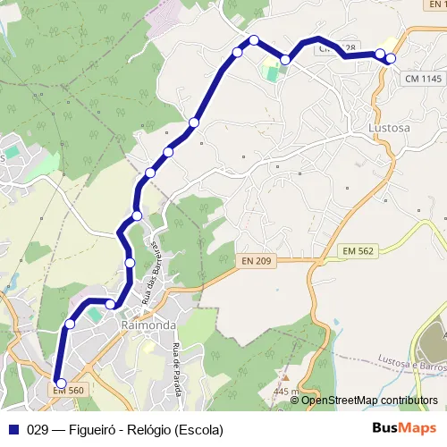 The first stop of the 029 bus route is Figueiró (Terminal) and the last stop is Lustosa (Eb23). 029 (Figueiró - Relógio (Escola)) is operational during on weekdays.