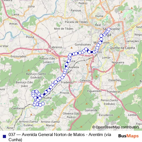 Click here to view the nearest 037 - Avenida General Norton de Matos - Arentim (via Cunha) bus stop.
