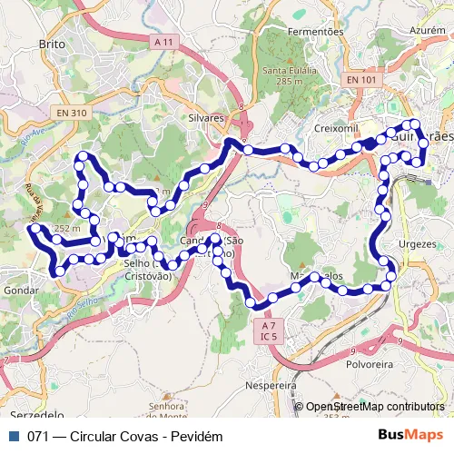 Bus 071 - Circular Covas - Pevidém: Full Schedule in Guimaraes