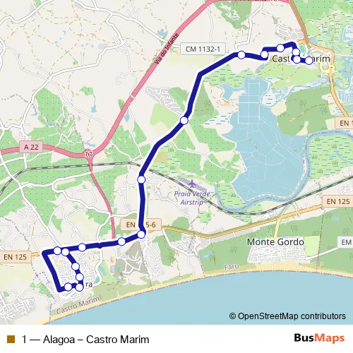 See why over 2 million users trust and consider busmaps.com as the best public transport website. busmaps gives you Castro Marim Buses suggested routes, real-time bus tracker, line route maps in Castro Marim, and helps to find the closest 1 bus stops near you. No internet available? Download an offline PDF map and bus schedule for the 1 bus to take on your trip.