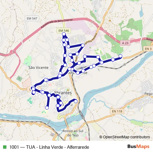 Click here to view the nearest 1001 - TUA - Linha Verde - Alferrarede bus stop.