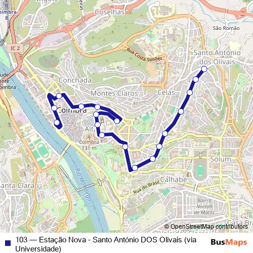 Click here to view the nearest 103 - Estação Nova - Santo António DOS Olivais (via Universidade) bus stop.