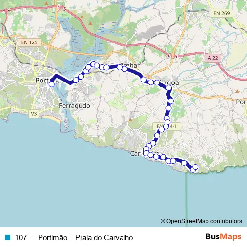 Click here to view the nearest 107 - Portimão – Praia do Carvalho bus stop.