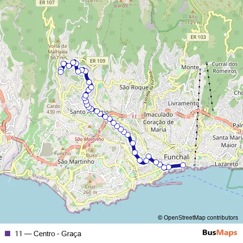Bus 11 - Centro - Graça in Funchal: Stops & Timetable