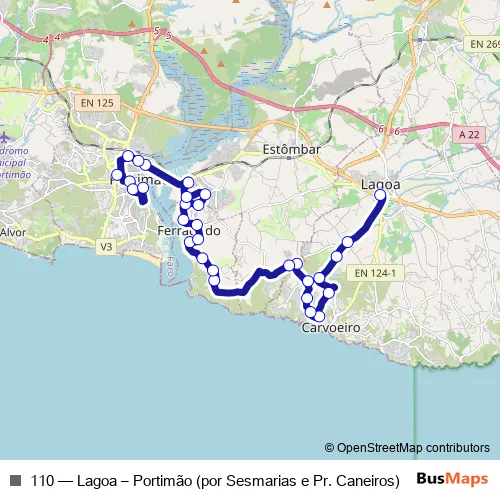 Click here to view the nearest 110 - Lagoa – Portimão (por Sesmarias e Pr. Caneiros) bus stop.