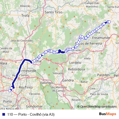 Bus 110 - Porto - Covilhô (via A3): Full Schedule in Pacos de Ferreira
